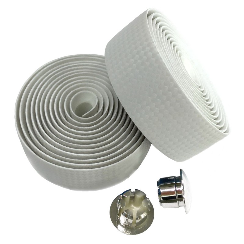 1 Pair White Carbon Fiber Design PU Leather Bicycle Handlebar Strap with Stoppers