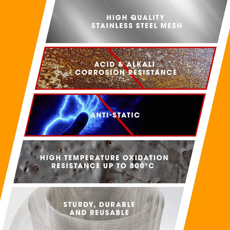 • Widely Usage: The Stainless-Steel mesh can be used in every area, including housing appliances, cooking equipment, art, and DIY. Using it as an air ventilator, a mosquito net, an animal cage and a fence for your yard. Or it could be a filter for your deep fryer or BBQ pit. Maybe with a little creativity, it could be a material for one of your art pieces or DIY projects.