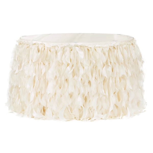 1 Pc, Curly Willow 14Ft Table Skirt - Ivory for Weddings, Quinceaneras, Birthday Celebrations