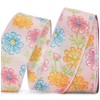 1 Pcs 1 1/2"W Spring Flowers Wired Ribbon Pink Yellow and Blue 5 Yards, Ribbo...