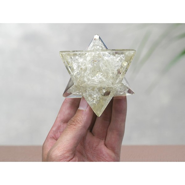 - Size of these Clear Quartz Orgone Merkaba Star is around 2.5 to 3 inch and weight is around 7 oz, and it has sharpest edges to maximize the healing effect.
