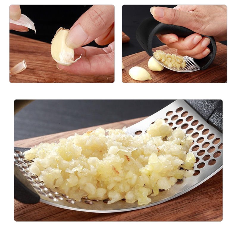 - CRUSH GARLIC EFFORTLESSLY: Tired of getting garlic all over your hands and workstation? This garlic press rocker saves you time and effort for your by pressing garlic easily! It is is made from high-quality 304 stainless steel that is built to last even the most pressing tasks!