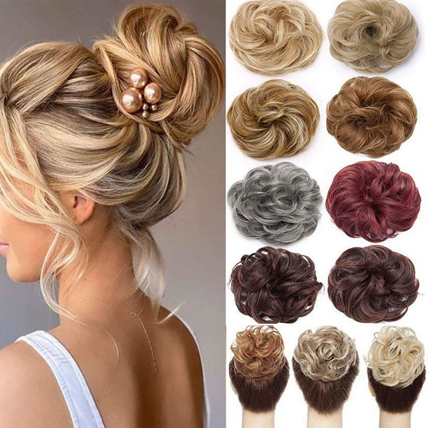 1 PCS Messy Bun Hair Extension Scrunchies Messy Bun Hair Piece for Women Curly Wavy Scrunchy Updo Bun Extensions Gold Blonde mix Bleach Blonde