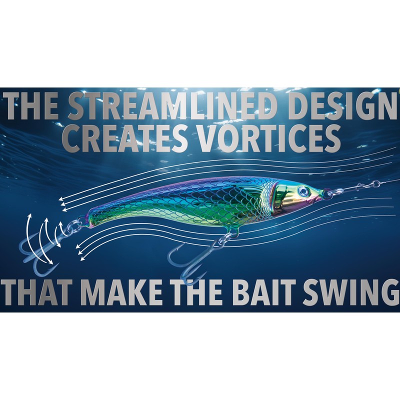 - Iridescent titanium-coated surface sparkles to attract fish.