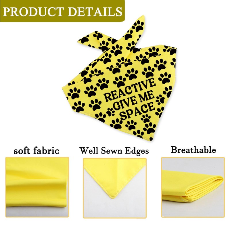 - Pack of 1 piece yellow bandana, It reads: Anxious / Reactive Give Me Space.
