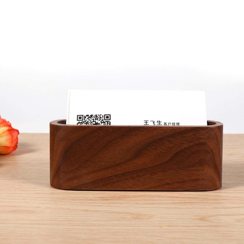 1 Piece Business Card Holder, Wooden Case Storage Box Organiser Office Desktop Ornaments Beech (Wood Colour) Black Walnut (Brown) Tables for Memo Card (Black Walnut Brown)
