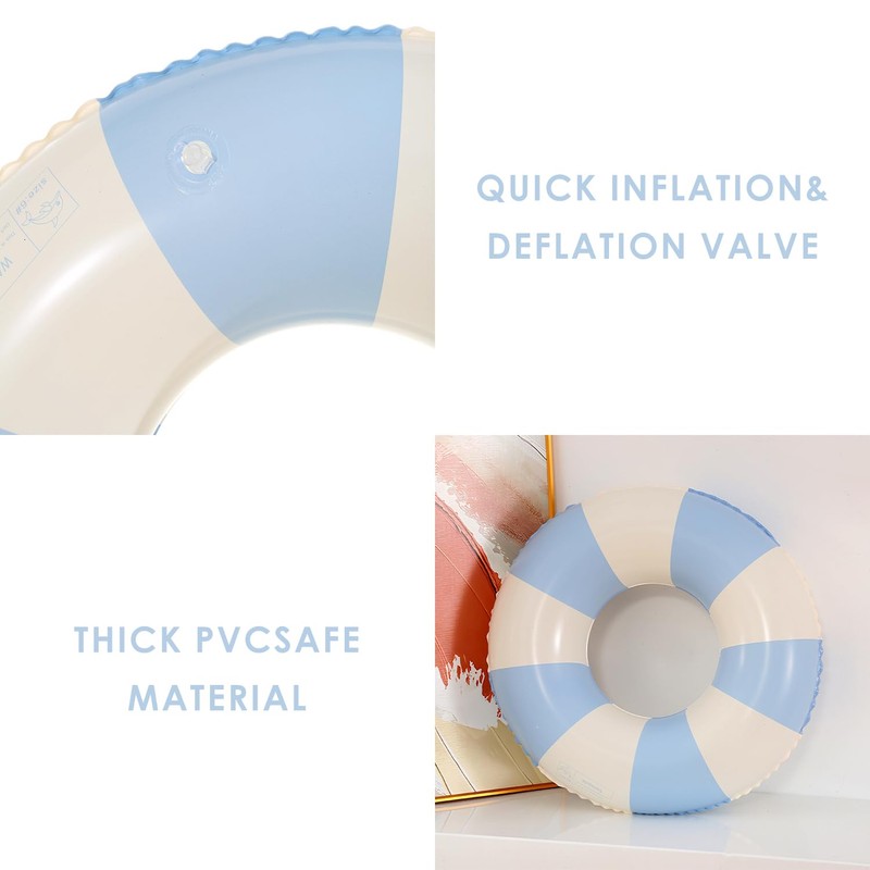 The blue and white striped inflatable children's swimming ring ensures safety and fun for children's water activities in summer and allows them to enjoy their cool time!