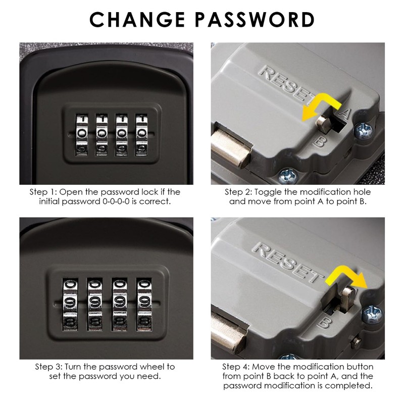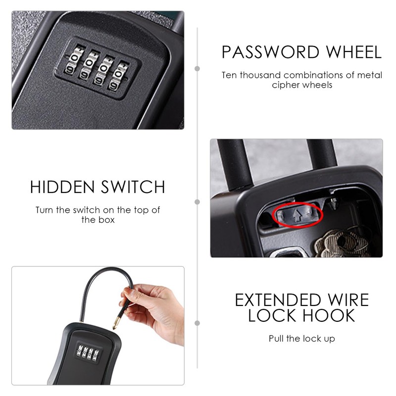 • Product material: Our key lock box is made of aluminium alloy, which is sturdy and durable, waterproof, drop-proof, rust-proof, not easy to fade, safe and reliable.
