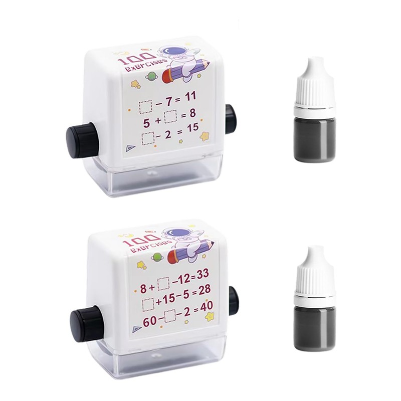 • 1. Product Details This math stamp roll set includes two functional stamps, one gap filling stamp within 20 and three sets of addition and subtraction stamps in different colors within 100. It can not only train children's ability to recognize numbers, but also strengthen their computational ability for addition and subtraction, thus fully meeting the requirements of mathematical enlightenment.