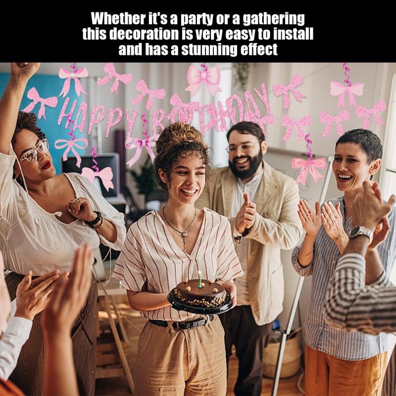 - 【Product Content】You Will Receive 1 Bow Birthday Flag And 6 Bow Spiral Charms. The Bow Birthday Flag Is Made Of Paper And The Color Is Pink; The Bow Spiral Pendant Is Made Of Paper And The Color Is Pink, Suitable For Birthday Party Decorations.