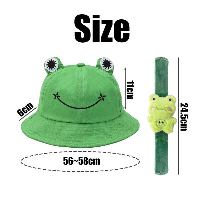 - 【Product Content】 You Will Receive 1 Frog Fisherman Hat And 1 Frog Bracelet. The Size Of The Frog Fisherman Hat Is 56-58Cm And The Color Is Green; The Size Of The Frog Bracelet Is 24.5Cm And The Color Is Green, Which Is Suitable For Matching Accessories.