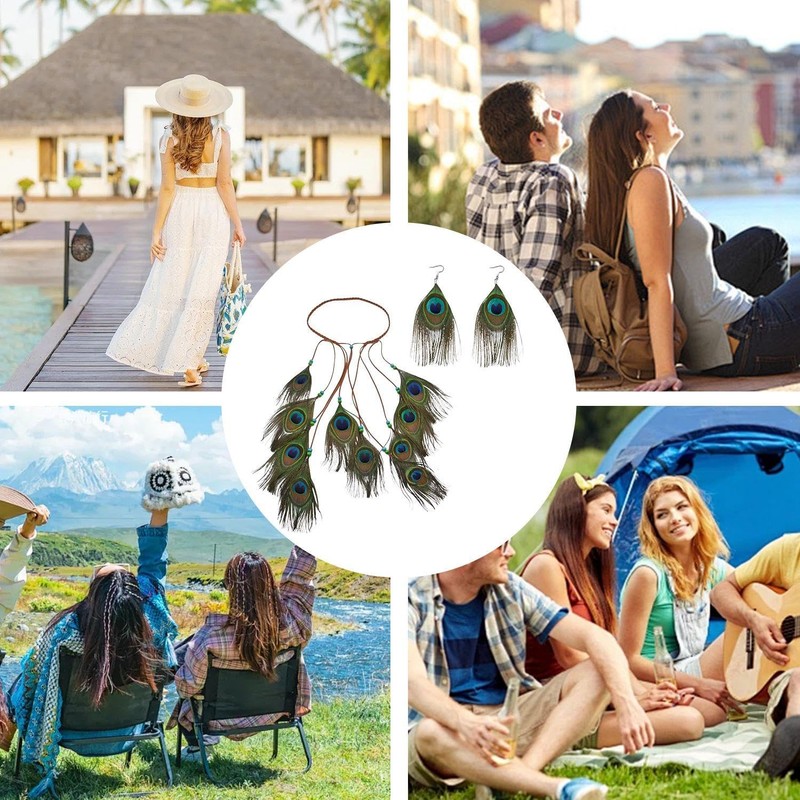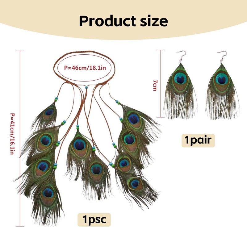 • 【Unique Design】This Product Is Uniquely Designed, With Peacock Feather Hairbands And Earrings In A Retro Indian Style, Suitable For Clothing Matching Of Various Themes, Adding Fashion And Elegance.
