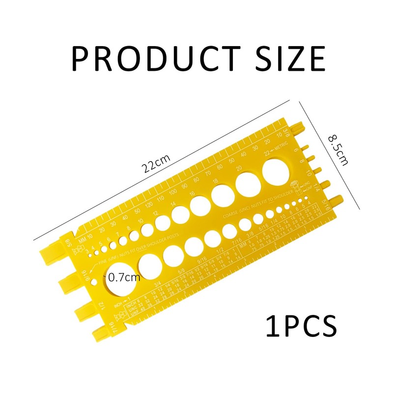 - [Product Content] You will receive 1 piece of screw measurer, the size is 22*8.5*0.7cm, the color is yellow, suitable for measuring and identifying the size of various screws and nuts.