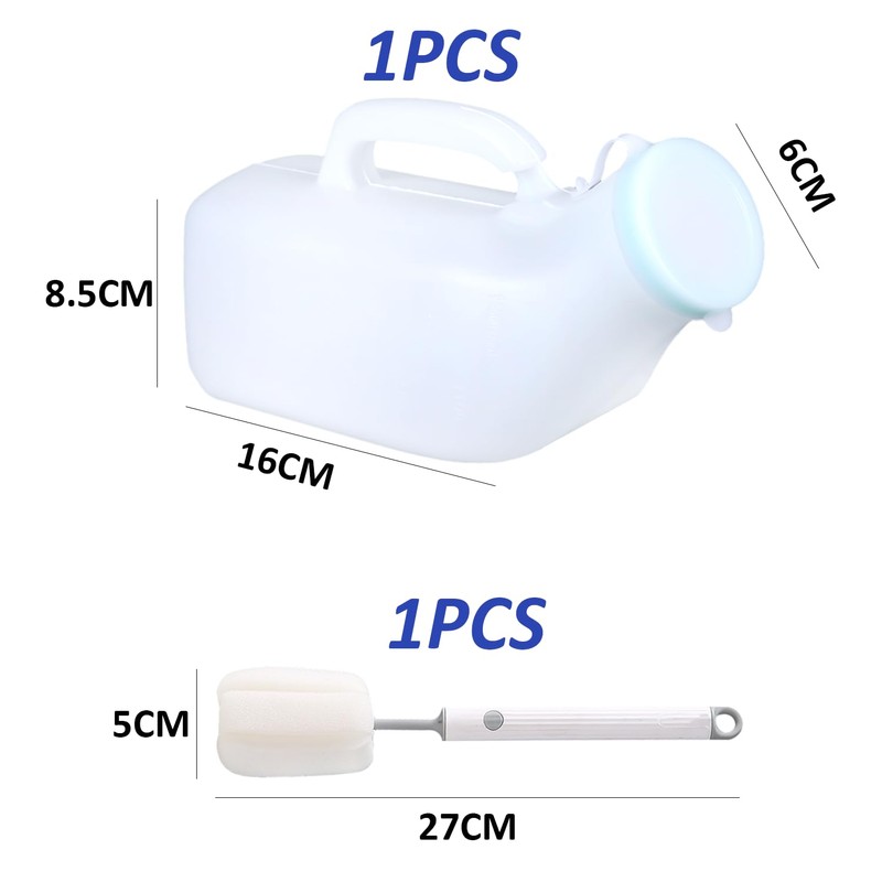 - [Easy to clean] The urinal bottle for men is very easy to clean. All you need to do is insert the cup brush included in the set into the bottle and scrub it clean under clear water. This is simple and straightforward.