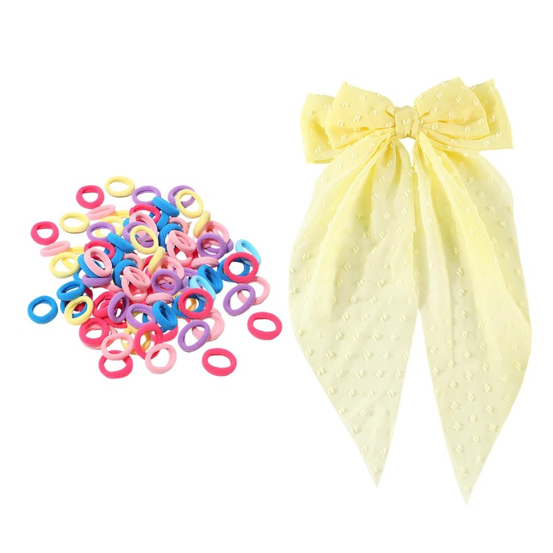 1 Piece Yellow Bow Hair Clip And 100 Piece Elastic Hair Rings, Ele And Simple Hair Clips, Hairstyle Decorations, Women'S Hair Accessories.