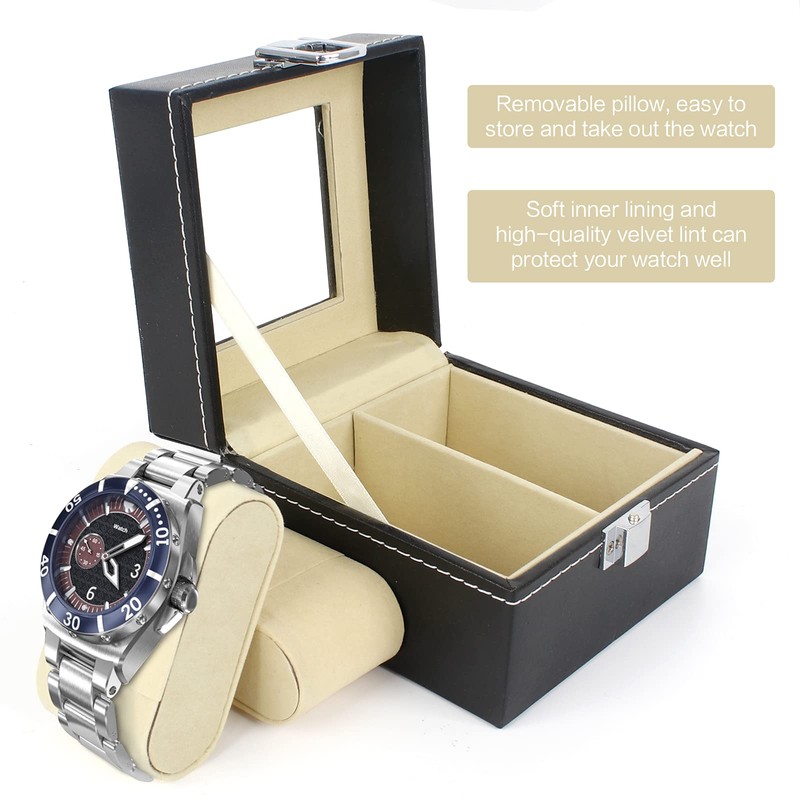 - 2-Slot Design: Watch case storage has 2 compartments, perfect for storing couple watches, sport watches and other watch. With removable pillow, enough space for you to store other accessories.
