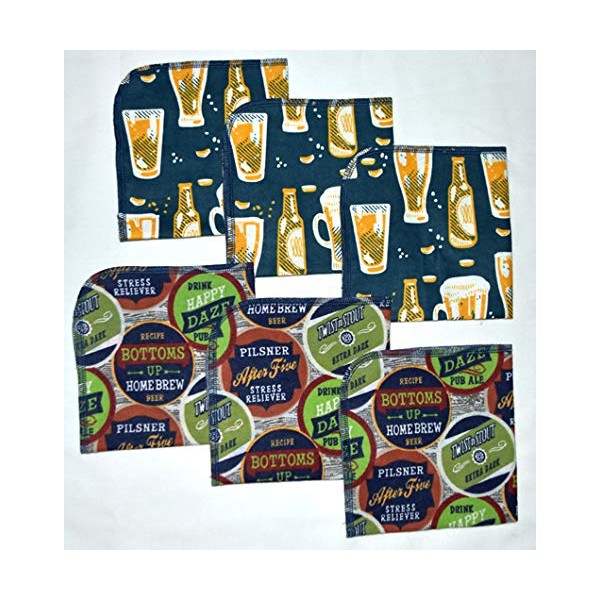 1 Ply Printed Flannel 12x12 Inches Little Wipes Set of 6 Cheers and Beers
