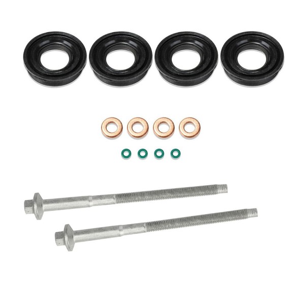 1 Set Injector Seal and Bolts Repair Seal Kit Replacement Compatible with Ford, Fuel Injector Seal Kit, Bolts Rocker Cover Gasket, Injector Seals Washer Screws Bolts Rocker Cover Gasket