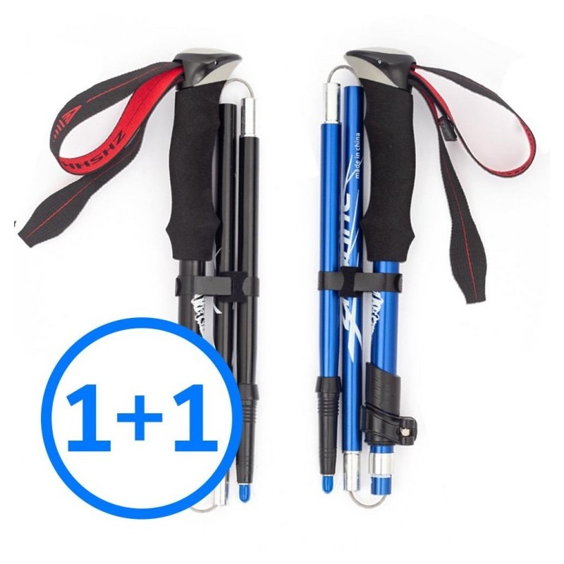 1 set of 2 ultra-light double fixed short long foldable hiking sticks foldable Hiking Stick Short Blue 1+1
