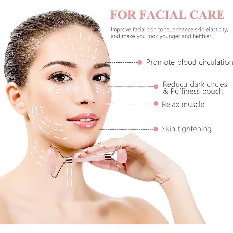 - Complete Facial Massage Set Includes one jade roller and one gua sha stone designed to support daily skin care and facial relaxation