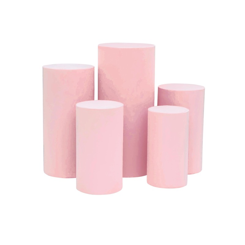 - Show off an enhanced dessert table design and the presentation for your backdrops at event setups with our Spandex Pillar Covers for Metal Cylinder Pedestal Stands 5 pcs/set - Pink! These classy fabric coverings for cylinder pedestals bring a heightened visual appeal to blend more seamlessly with your event setups.