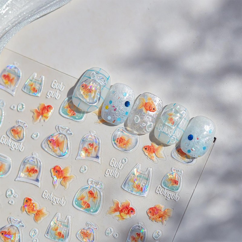- Safely Materials: 5D goldfish nail stickers are made of environmentally friendly materials, safe, you can use it with confidence
