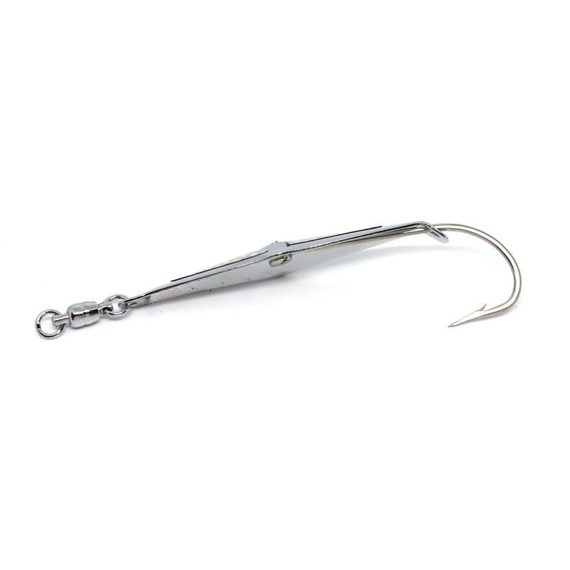 Our original sz1 Spoon-Squid with a size 3 stainless steel ball bearing swivel. The spoon is chrome-plated with welded rings, and has a saltwater hook.