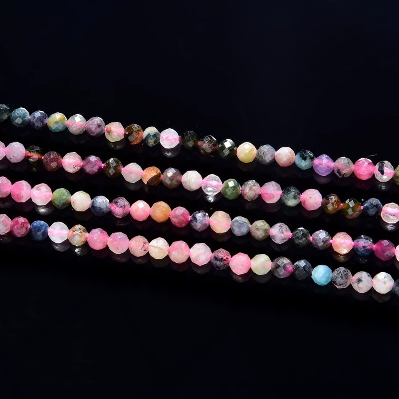 1 Strand Adabele Natural Multi-Color Tourmaline Healing Gemstone 4mm (0.16 Inch) Tiny Small Faceted Round Loose Beads Stone Spacer (90-100pcs) for Craft Jewelry Making GK4-2
