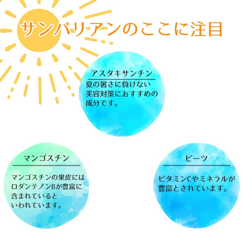 - 夏の暑さに負けない『美容対策』出来てますか?夏といえば、海!プール!バーベキュー!フェスも!屋外のレジャーが楽しい季節ですね。美容にも特に気をつかいたいところです。悩める女性スタッフたっての希望で生まれたこのサプリ。夏の美容におすすめの成分「アスタキサンチン」と、果物の女王「マンゴスチンエキス」をぎゅーっと1粒に凝縮しました!