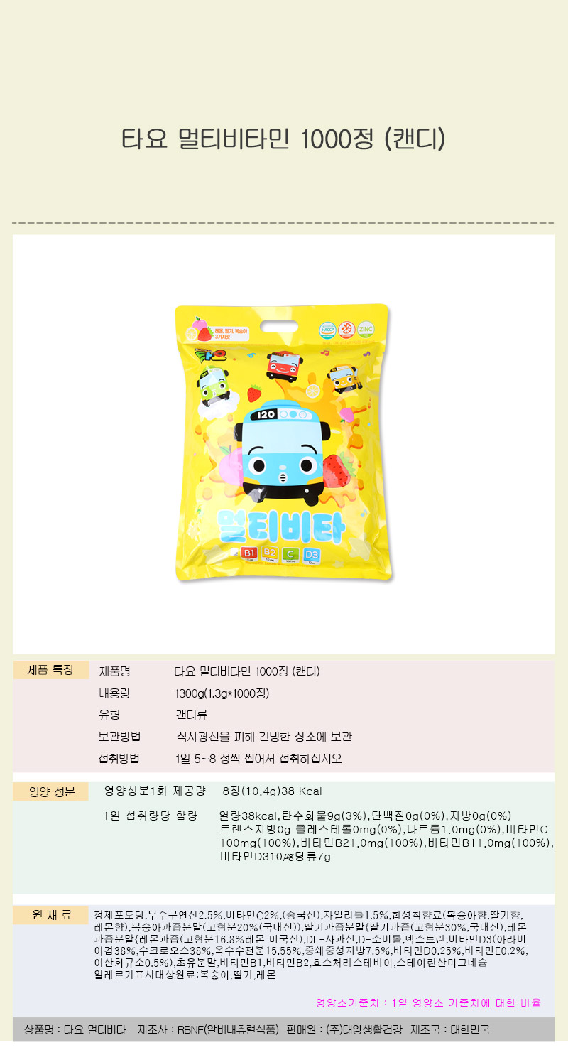 1 Tayo Vitamin 1000 tablets / 타요 비타민 1000정 1개