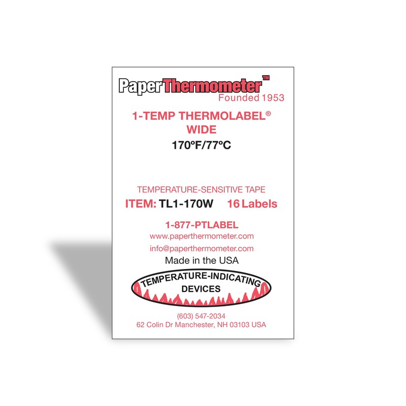 1-Temp Thermolabel Wide 170°F/77°C Temperature Label Pack of 16 Labels