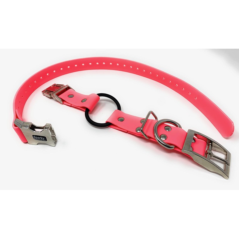 1" Biothane Bungee Double Buckle E Collar Receiver Replacement Strap - 1" x 30"! Works with all E Collar Systems where the receiver threads onto the strap without contact points. Length 30 ". 7 Colors. Will fit on neck sizes between 9 1/2 inches and 28" inches. Simply trim to size with a scissor as it will fit all sport dogs. Shock Resistant, Easy to wipe clean. Made with durable Biothane material. Works with all major Brands including this series- 800 and 1200 model receivers as well as the RX-120 receiver. Works with these Major Brands- Dogtra, Garmin, Einstein, E Collar Technologies, Sit means Sit Dog Collar System.
