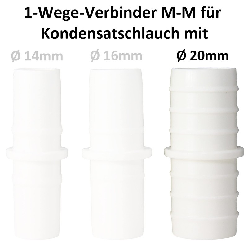 - 1-way connector M-M for condensate hoses with a diameter of 20 mm