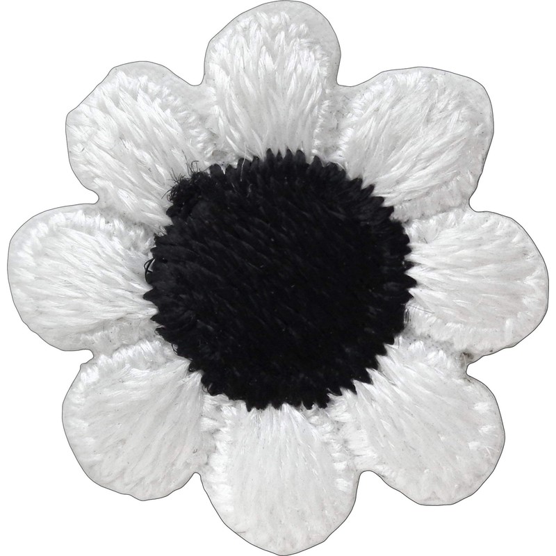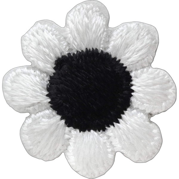 1" White Daisy Flower with Black Center - Embroidered Iron On or Sew On Patch