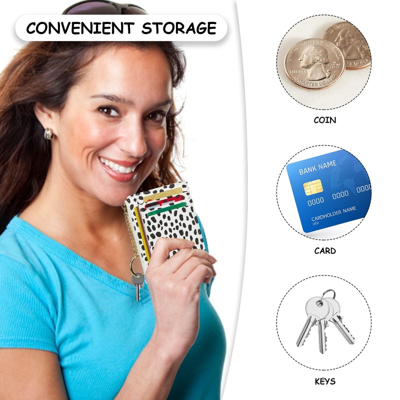 - Multiple card slots for storage: the card holder bag has 8 card slots, which you can easily store your various cards such as bank cards, ID cards, membership cards, etc. A keyring is attached to the zip for storing your keys.