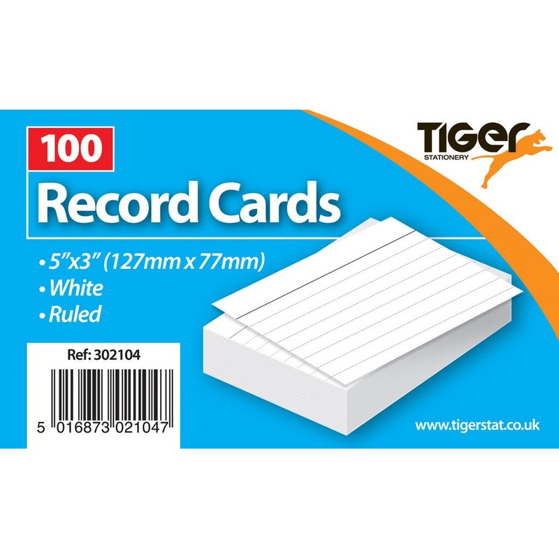 1 x 100 Sheet Pack of Record Flash Cards Ruled Study Revision White 5x3"