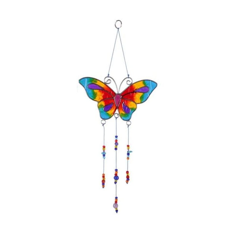 1 x Butterfly Suncatcher With Hanging Beads Stained Glass Effect (Assorted)