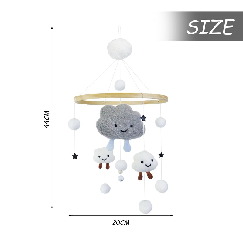 - 1. ☁Package content: includes 1 grey cloud baby wind chime, size 20 x 44 cm. It is a popular wind chime toy for children.