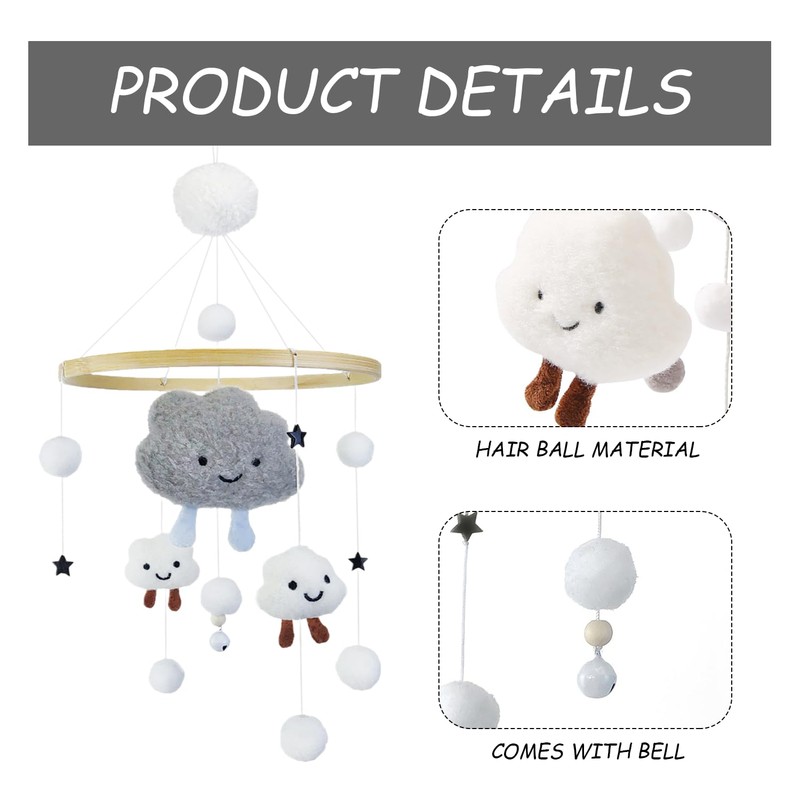 - 4. ☁ Product function: baby wind chimes can create a comfortable sleeping environment and help children fall asleep. The fur ball design can train children's practical skills and stimulate children's activity. Wind chimes can also beautify baby's room and bedroom and serve as decoration.