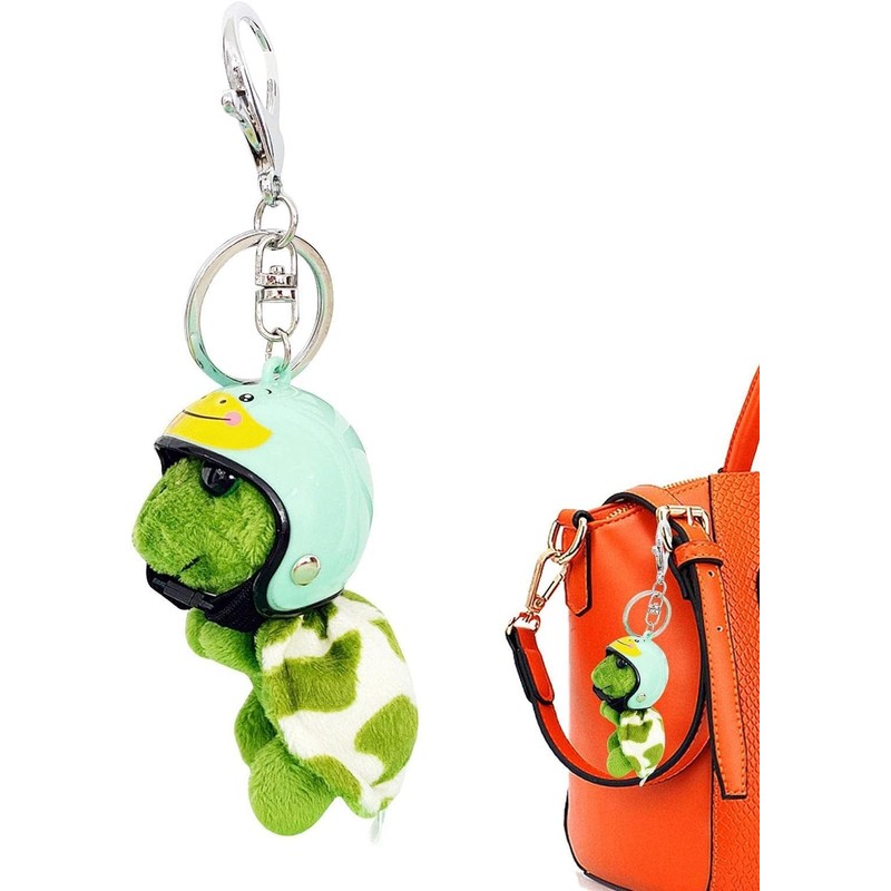1 x Green Cute Plush Pendant Keyring, Small Green Decorative Cartoon Turtle, Filled Plush Key Ring, Stuffed Toy Doll, Tortoise Plush Keyring for Home, Women, Green