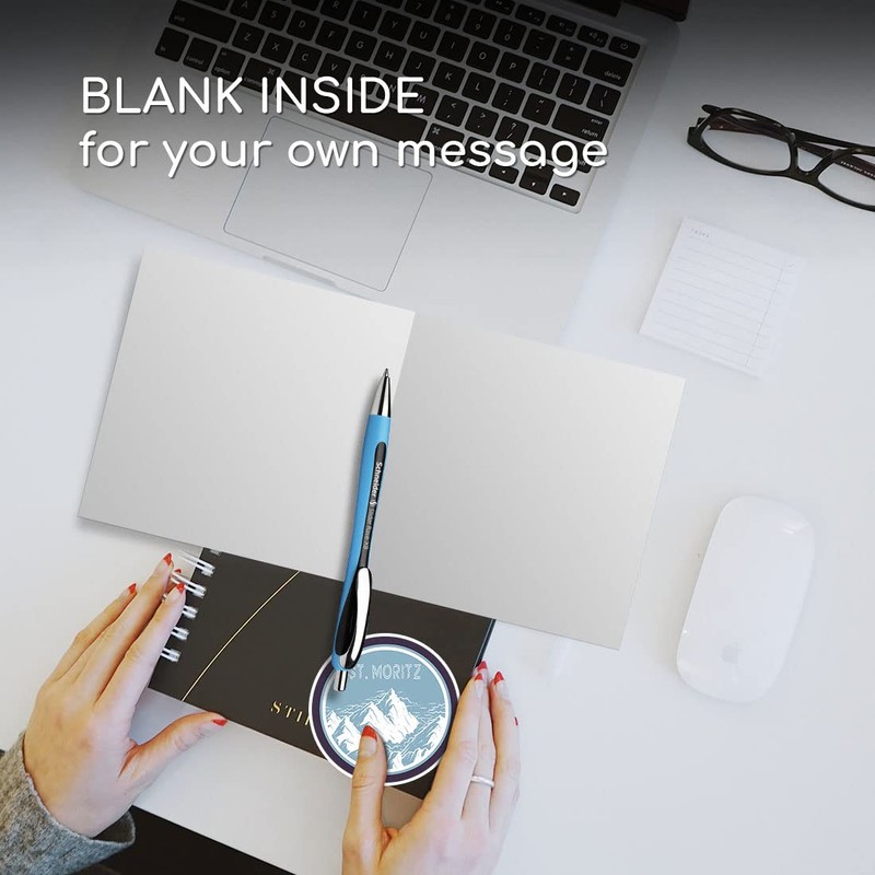 1 x Greeting Card & 10 cm Round Sticker Set - St Moritz Ski Switzerland Mountains Skiing - Birthday Thank You Friend Lover Fan Mum Dad Kids #59035