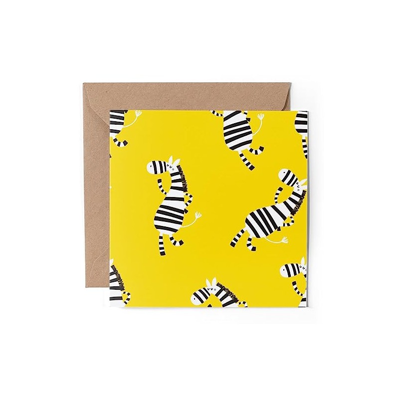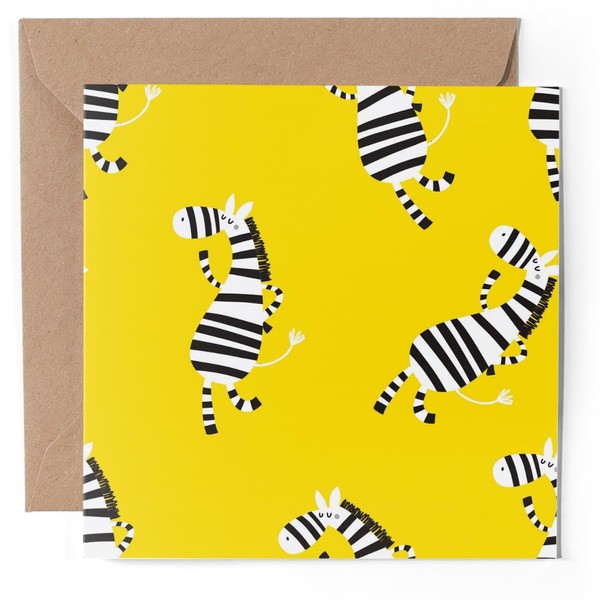 1 x Greeting Card - Yellow Zebra Animal Pattern - Blank Birthday Celebration Anniversary #170954