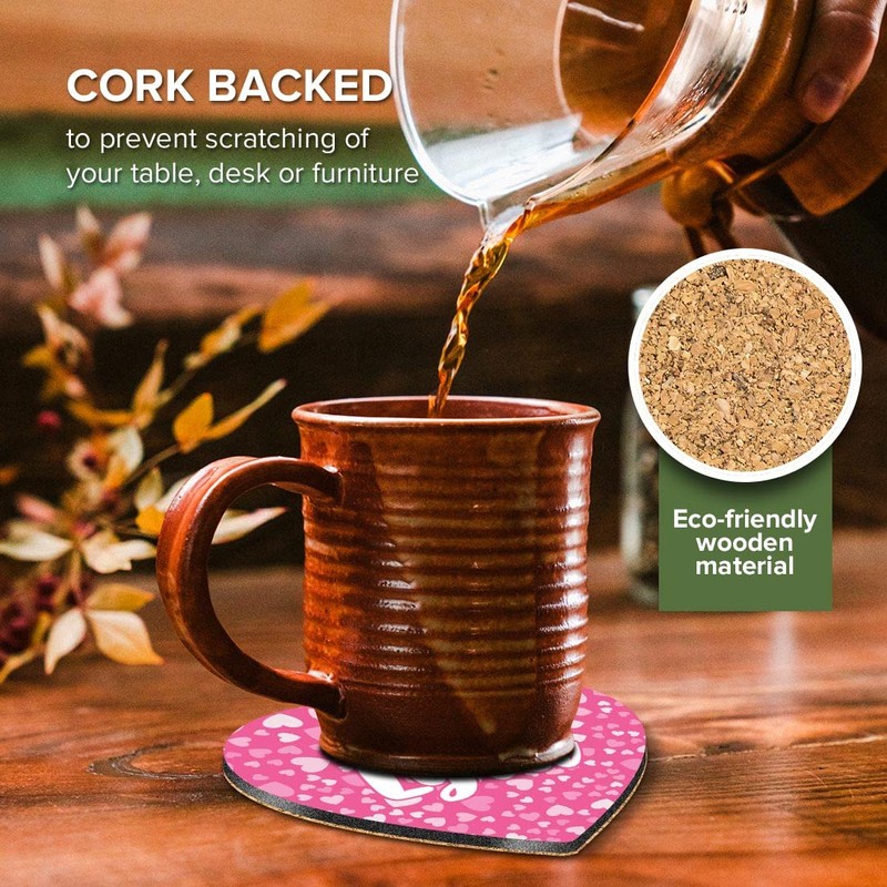 - Strong MDF Wood - The coaster upper layer is a glossy printed image, the middle layer is MDF wood, with a natural cork base to protect your dining table or office desk.