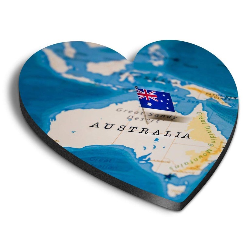 1 x Heart MDF Magnets - Australia World Map Flag 44172