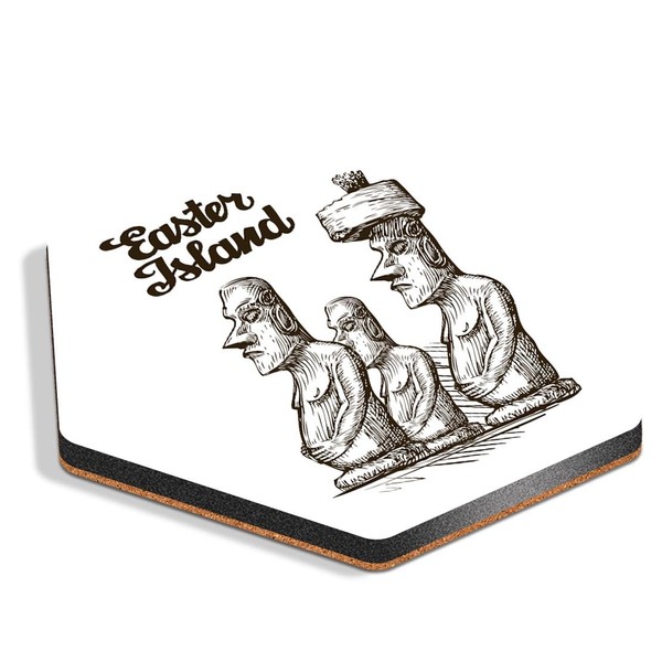 1 x Hexagon Coaster - Easter Island Monumental Statues Cork Backed MDF Glossy Tea Coffee Accessory #59545