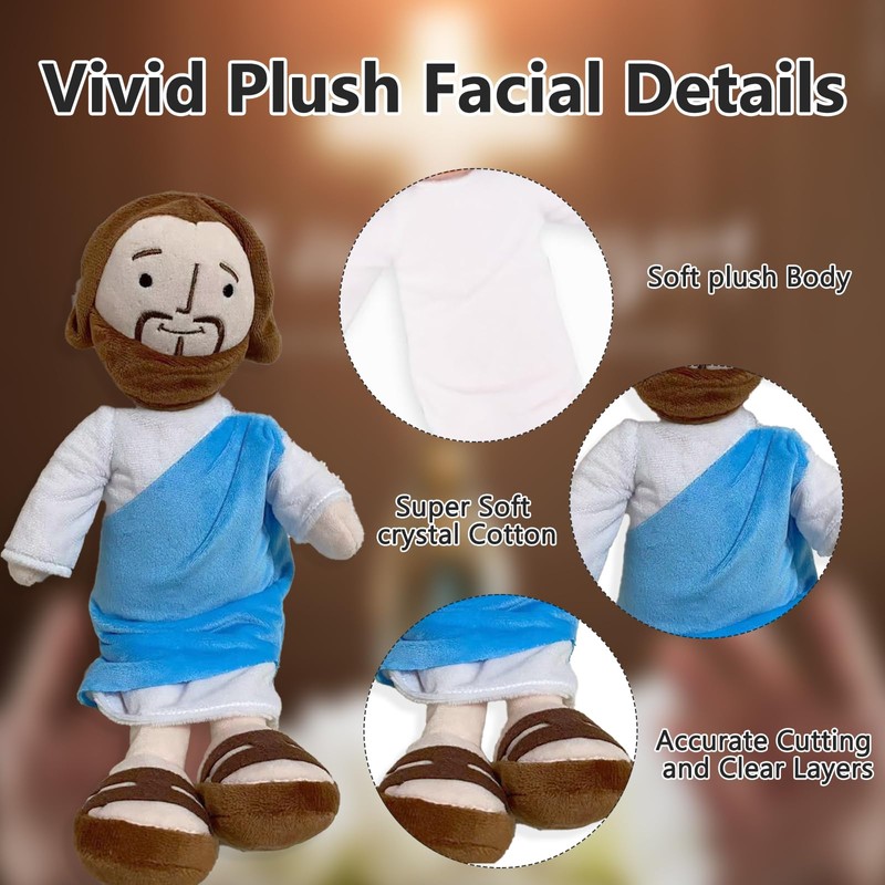 - CHARMING DESIGN My friend jesus plush becomes a unique way to spread their religious beliefs and share love and kindness with its vibrant and vibrant image design. Both children and adults will be attracted to the cuteness of Jesus plush figure, making Jesus plush a cheerful symbol full of positive energy.