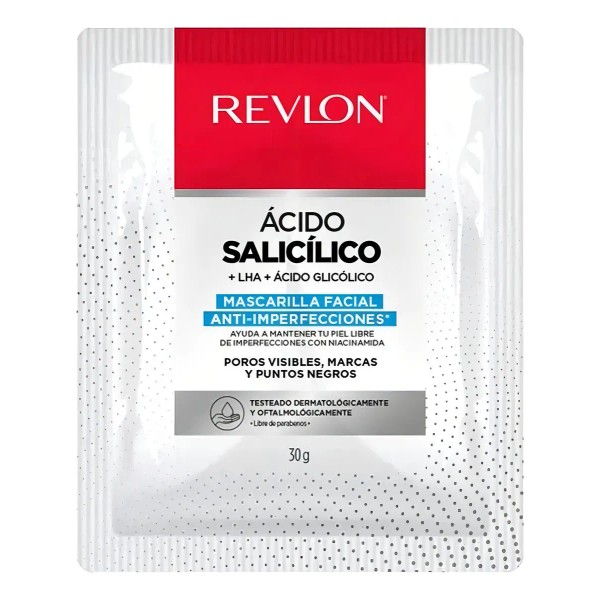 Mascarilla Facial Ácido Salicílico Revlon, mejora la apariencia de la piel y controla imperfecciones.