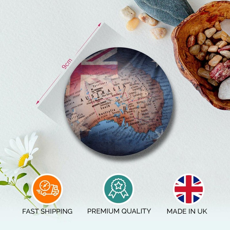 1 x Round Coaster - Australian Flag Map Australia Cork Backed MDF Glossy Tea Coffee Accessory #21170