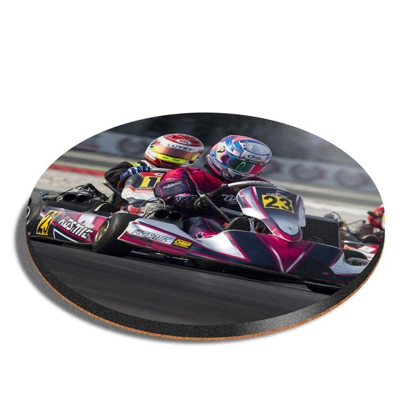 1 x Round Coaster - Go Karting Racing Kart Cork Backed MDF Glossy Tea Coffee Accessory #16474
