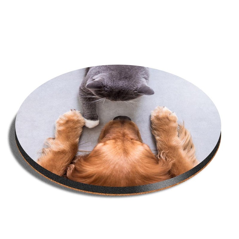 1 x Round Coaster - Labrador and British Grey Cat Cork Backed MDF Glossy Tea ...